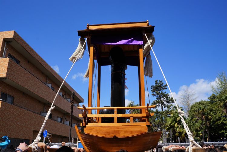 祭祀的亮点集中在神龛上承载着的三座奇特的阳具模型,格外引人注目。铁男根祭船型神龛 (Kanamara Boat Mikoshi) 包含一个黑铁制成的阳具。