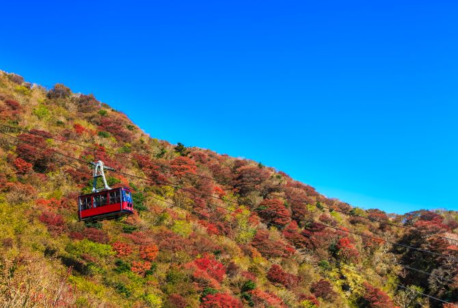 您可以从这里搭乘缆车,前往妙见岳。从一片红黄树海上掠过,欣赏脚下世界色彩纷呈的美丽景致。