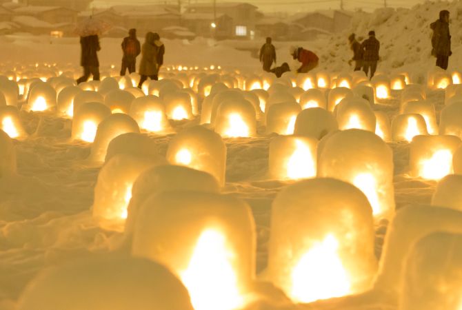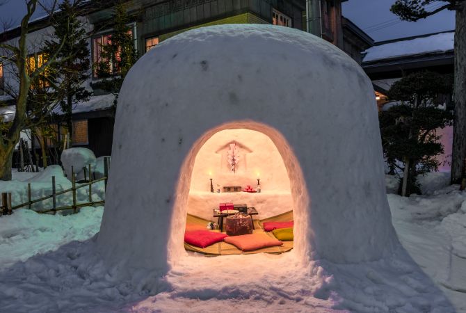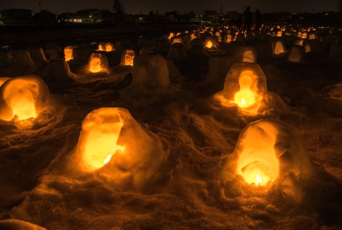横手雪祭吸引了全日本的国民涌向秋田县。在这场已有 450 年历史的祭典上,人们会搭建 80 多座雪屋和无数的微型雪屋。