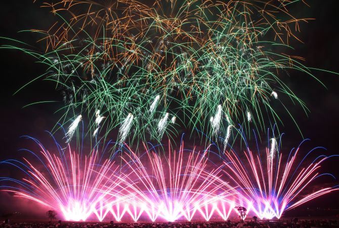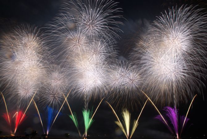 与音乐同步的烟火是最受欢迎的。无数烟火与音乐完美同步,打造了一个不可思议的场面。请尽情欣赏日本最优秀的烟火师表演的“光与声之艺术”吧!