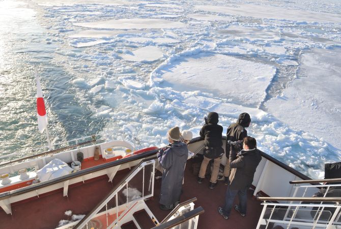 搭乘破冰船是最值得推荐,也是最能轻松体验流冰的一个方法。您可以在网走或纹别搭乘破冰船。另一个好方法就是从罗臼搭观光船进入根室海峡。您无论选择哪种方式,别忘了带上望远镜,沿途欣赏船外的虎头海鵰与海豹。