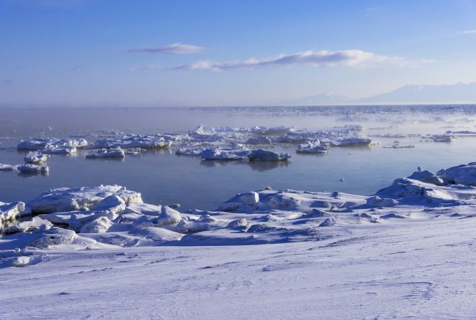 一路延伸至西伯利亚的鄂霍次克海流冰,几乎会将北海道的北边海岸冻结整个冬季。在鄂霍次克海沿岸的许多地点,都能欣赏到这种不同凡响的自然现象,同时可以多种方式近距离体验感受。
