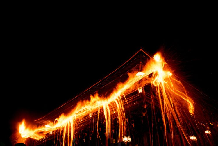 在修二会期间,每晚都能见证祭典热闹的一面。童子 (doji) 会举着火把为僧侣照亮前往寺庙的道路。由于持续不停地走动与挥舞,火花就会落到底下的人群身上。据说这些火花能保护人们,将恶灵驱散。