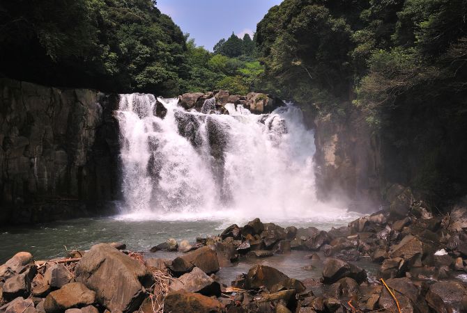 从宫崎进入宫崎自动车道,往熊本方向行驶。从都城市出口开上 10 号国道。约 10 分钟后右转进入 108 号国道。这里有指引车辆前往瀑布的道路标识。