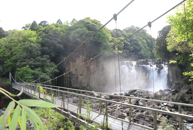 关之尾瀑布是宫崎最大、气势最磅礴的瀑布。站在吊桥上可见一川瀑布飞流直下,倾泻到下方的火山岩上。如果需要拍照,记得速度要快,否则相机会被打湿。