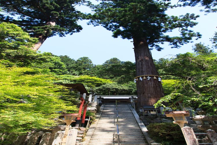 由岐神社中有一棵矗立在正殿前方、高 53 米,具有 800 年历史的大杉树,非常值得一观。根据神道佛教的说法,这一棵神木是一个"依代",意指一种能吸引神明或灵体的物体。