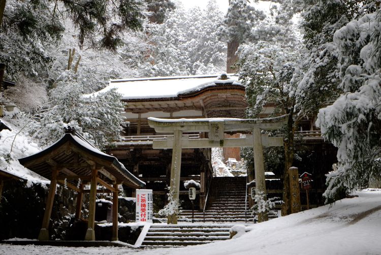 公元 940 年,由岐神社从京都市中心迁至鞍马,以保佑此地区远离灾厄。周围散布着古老杉林,是北部山区的美丽绿洲。