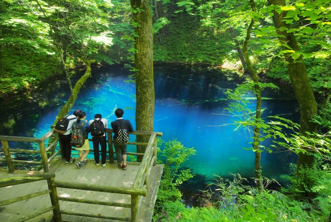 秋田北部少有地震,但 1704 年的一场大地震影响了附近的青森县的地貌。土地崩塌,导致该地区一些清澈的地下水形成了湖泊和池塘。