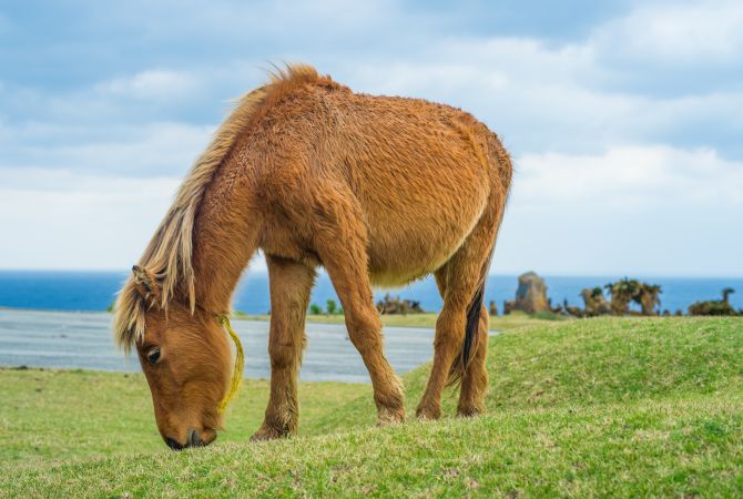 与那国马曾是在田间劳动的家畜,但现在他们的工作已经被机器取代。现在只剩下大约 100 匹与那国马。与那国马的数量现在正受到严密监控。面向孩童的骑马课程有助于改善这些濒危动物的未来。