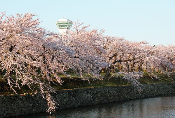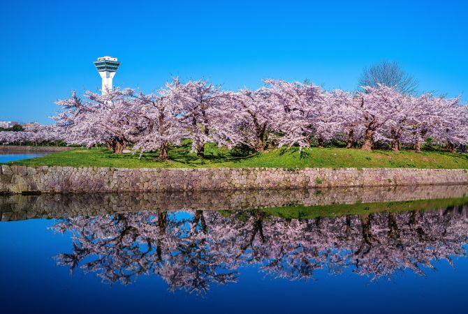 - 在观景台欣赏星形堡垒周围的樱花