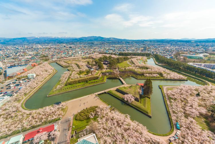 随着您走近五棱郭公园,混合着樱花与烤肉的香气会吸引您越靠越近。五棱郭公园是函馆最佳的赏樱场所,拥有星形护城河环绕的堡垒和观景台,是函馆的必游景点。