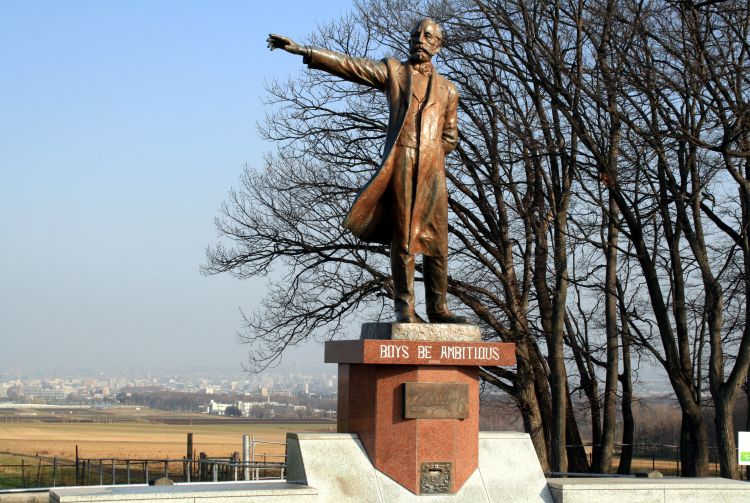 威廉·史密斯·克拉克博士是一位美国教授,于 1876 年受日本政府邀请,协助创立了札幌农学校(即现在的北海道大学)。他的知识与教诲对北海道的开拓产生深远影响,至今依然深受北海道当地民众的景仰。游客来到羊之丘,一定记得摆出克拉克博士的知名姿势拍照。