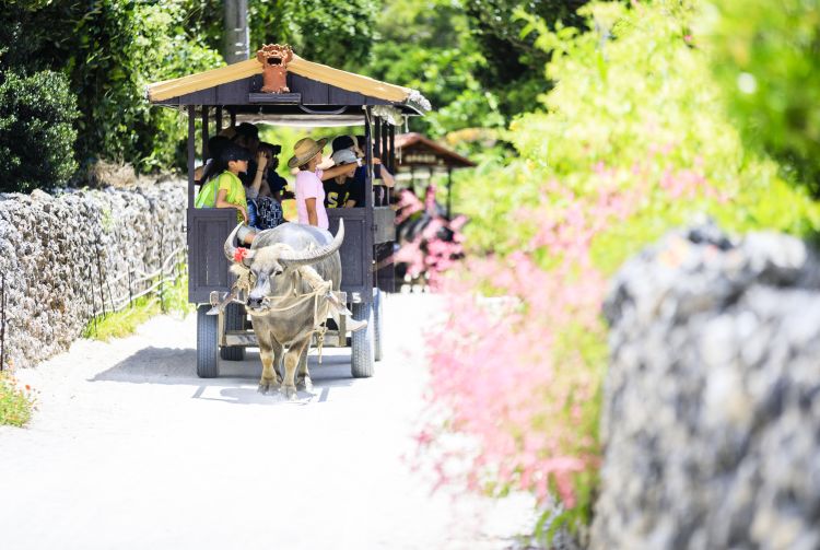 您可以乘坐水牛车探索竹富岛的村庄。搭乘水牛车在村落中观光大约 30 分钟,导游还会使用三线(一种类似日本三味线的三弦乐器)弹奏情歌。