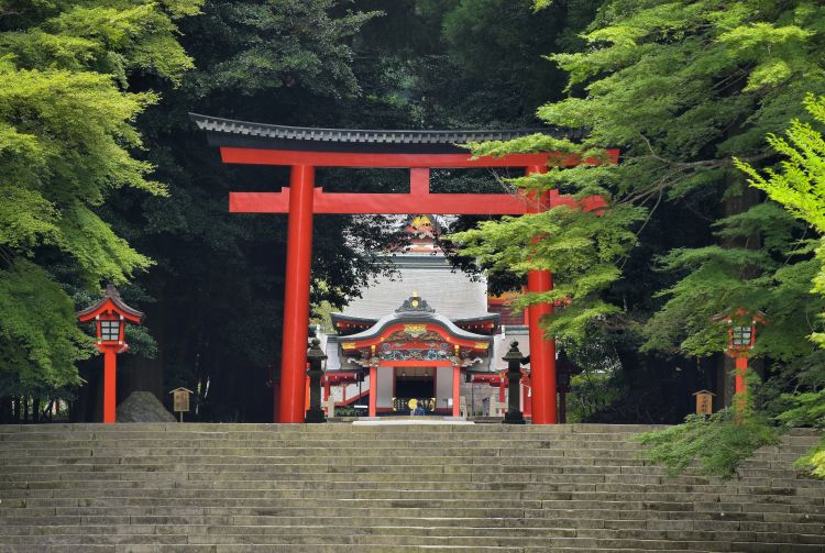 这座神社最初位于神圣的高千穗峰山脚下,但因为火山喷发多次被烧毁,从而搬迁到了如今的位置。这座神社于 1715 年重建,是日本的国宝。