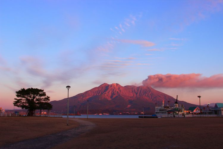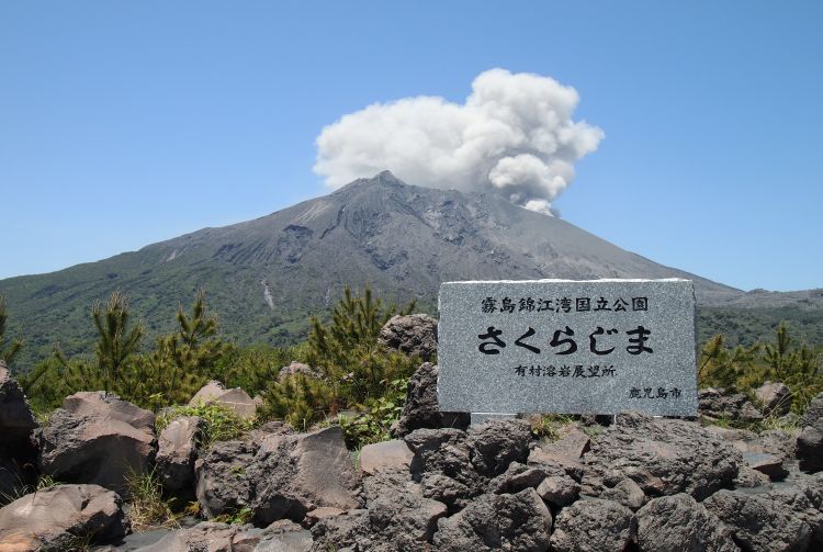 这座火山位于雾岛锦江湾国立公园内,高 1,117 米,火山活动频繁,喷发时的火山灰可冲至数千米的高空。