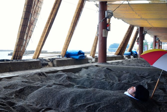 指宿是鹿儿岛最著名的温泉度假胜地,以绝佳的海滨地理位置和沙蒸 (sunamushi) 热沙浴而闻名,据说早在 300 多年前,这种沐浴方式就已流行起来。沙子由一座地下温泉自然加热。