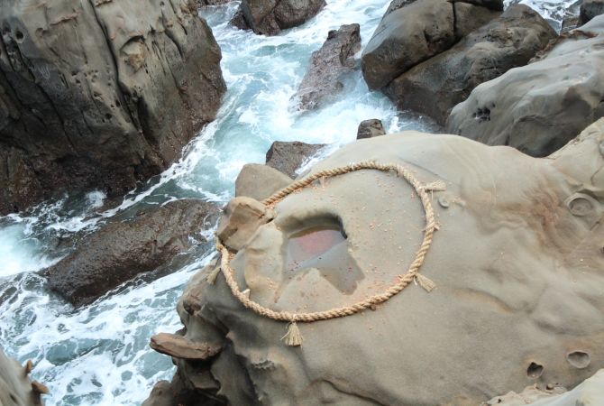 绝美的大海距离神社主入口仅数米之遥,主入口下方还有一处洞穴。