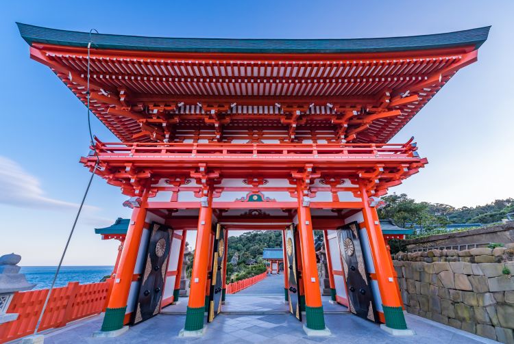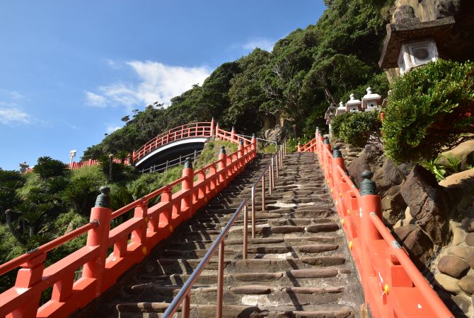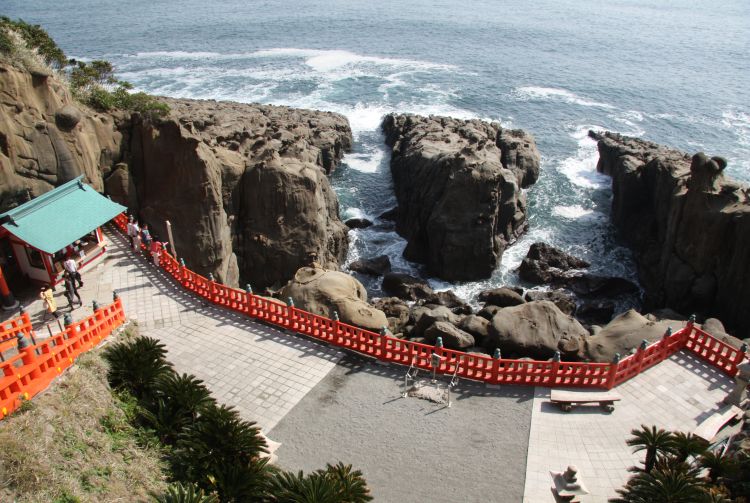 鹈户神宫坐落于陡峭的悬崖之上,俯瞰广阔的蓝色深海和嶙峋的礁石,是造访宫崎时的必去之地。