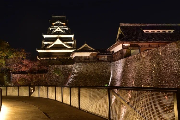 尽管在 2016 年的地震中遭到破坏,但熊本城依然是这座城市的热门旅游胜地,每年接待大量游客。外表全黑,城墙陡峭,十分壮观。熊本城易守难攻,是为阻挡敌人攻击而专门打造的堡垒。