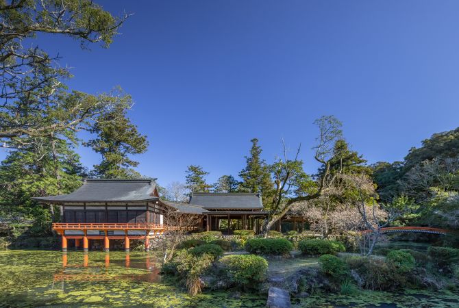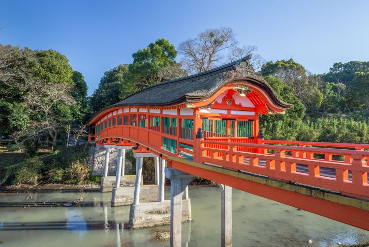 相传,宇佐神宫是日本的第一座神社,于八世纪将八幡神入祀于此,因此深受日本皇室的尊敬和惠顾,也是日本所有供奉守护神和军运神的神社的总本社。