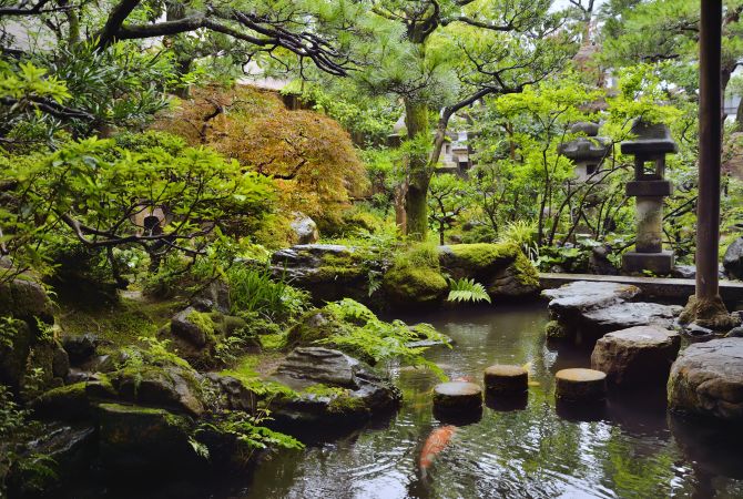从野村家往南走 5 分钟,就来到了金泽市老铺纪念馆,这是一家重新翻修过的商人药房,曾经服务于生活在这个地方的武士。在这座纪念馆内,您不但可以了解当时商人阶层的生活,还可以欣赏这里展出的金泽本地工艺品。