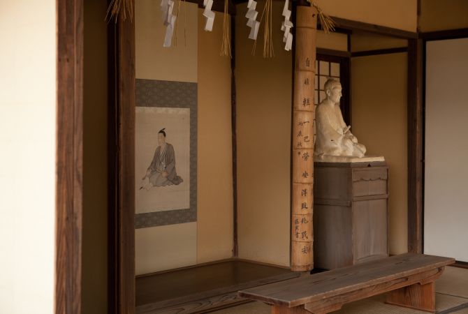 松阴神社是以吉田松阴的名字命名的。吉田松阴是萩市的精神象征,他在 1859 年因为革命观念而被幕府处死,不过他的影响却十分深远。这位学识渊博的武士曾在附近的松下村塾传道授业,教授了一群推动日本现代化的年轻武士,因而被人们铭记至今。