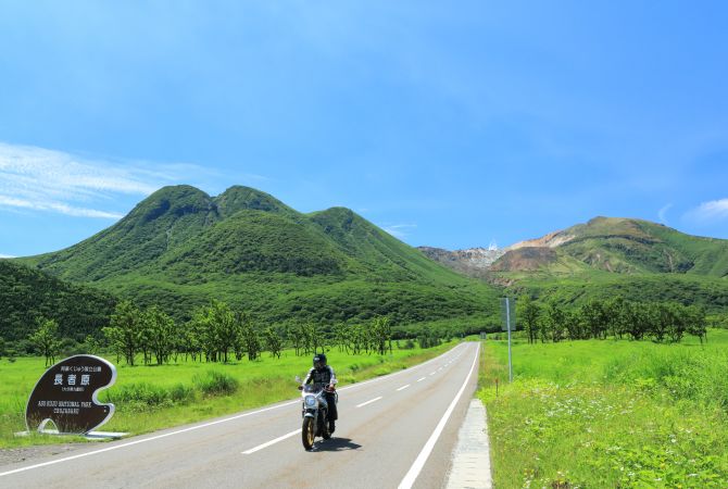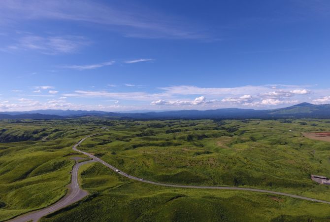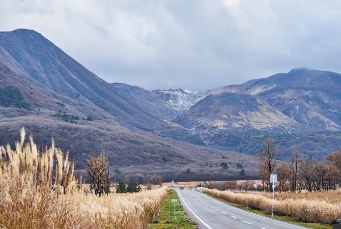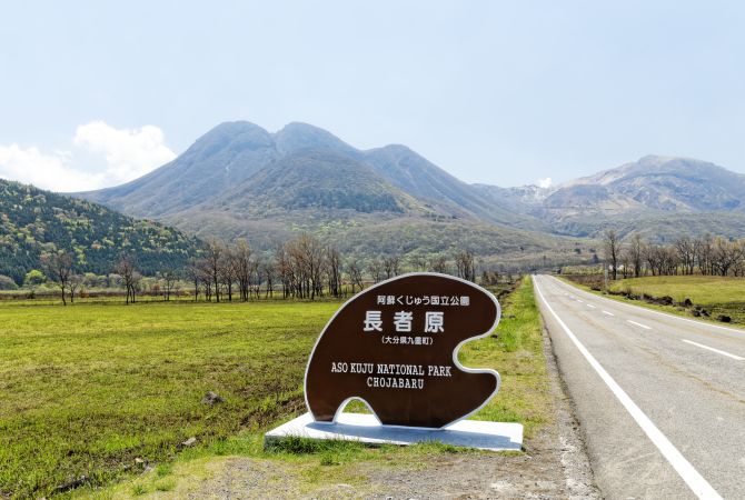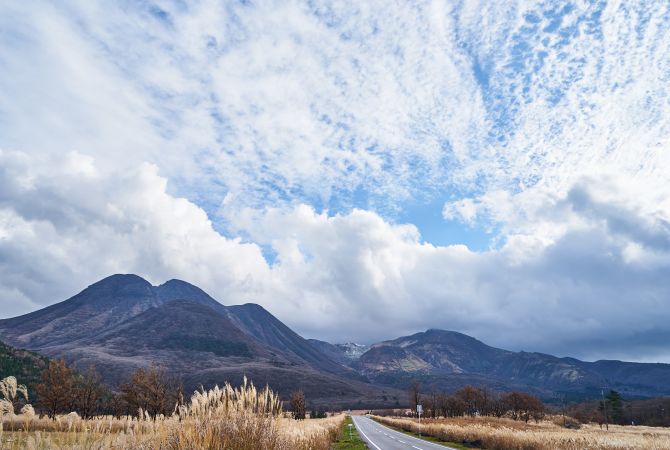 阿苏久住国立公园和此处的山脉以其迷人的景色、有疗效的温泉以及本地乳制品而闻名。在久住高原地区,您可以跨过一座横跨峡谷和天空的人行吊桥。环境省推荐从久住到阿苏的 14 公里驾驶路线,能欣赏到最美的风景。