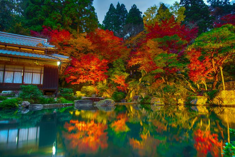 与其它两座寺庙一样,百济寺的秋叶也非常有名,尤以水景花园周围最为赏心悦目。这里已入选日本赏枫百选名所,夜晚灯火点亮之时更是醉人,恍若梦中。