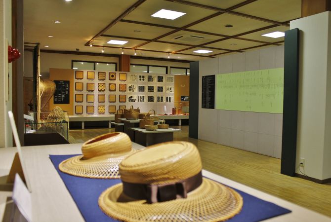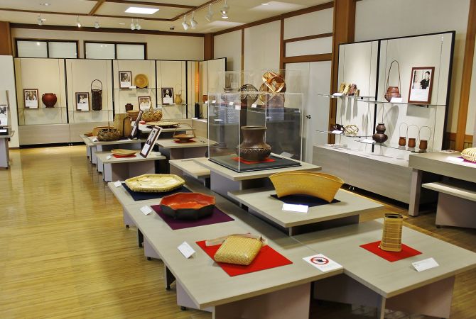 别府市竹工艺传统产业会馆展出竹编作品,竹编是拥有数百年历史的重要手工艺。