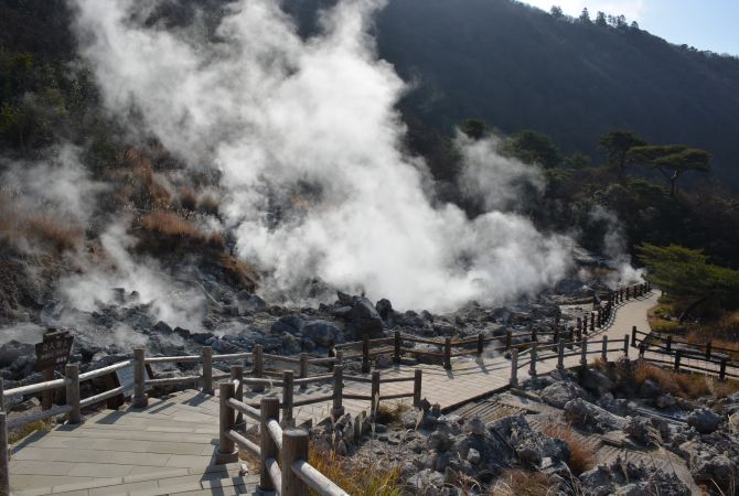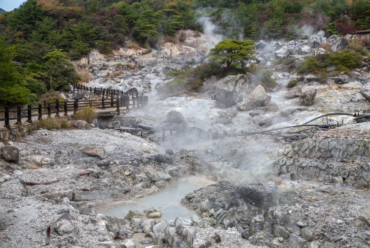 该地区以地面流淌的热水和弥漫的热气而得名,基岩裂缝中产生的热水和喷气孔,以及独特的硫磺气味让人想起佛教教义中的“地狱”。这个地方深受日本公民和外国游人的喜爱,在这里,您会找到各种传统日本风格和西洋风格的酒店和温泉度假村。