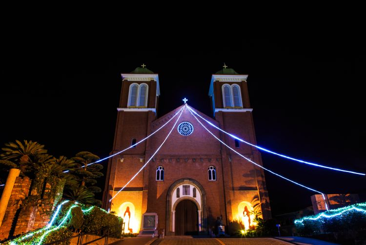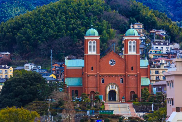 这座红砖砌成的大教堂曾是东方最大的罗马天主教堂。经历原子弹的浩劫之后,浦上教会只有寥寥几处建筑幸免于难,教会内的钟就是其中之一。同一年的圣诞节前夜,爆炸幸存者从碎石瓦砾中挖出了这座钟,并敲响了它。这些幸存者以及后来的许多人齐心协力重建了我们今天所看到的大教堂。