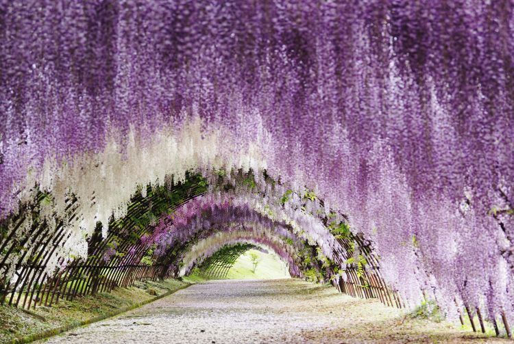 以唯美的紫藤隧道和巨型花穹闻名的花园