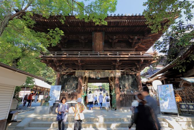 石手寺拥有许多非比寻常的元素。在仁王门的两侧,您可以看到两只巨大的草鞋。传说罹患腿部疾病的人触摸草鞋之后就能痊愈。