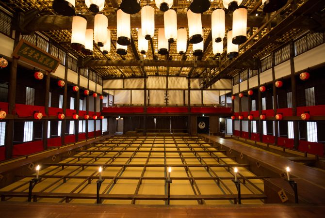 旧金毘罗大芝居(俗称“金丸座”)建于 1835 年,是日本现存最古老的剧院。在江户时代 (1603-1868) 中期,对金比罗(据说是海员的保护神)的崇拜盛行,许多人参拜供奉着金比罗的金刀比罗宫。歌舞伎表演和抽奖活动是当时为这些朝圣者提供的娱乐活动。