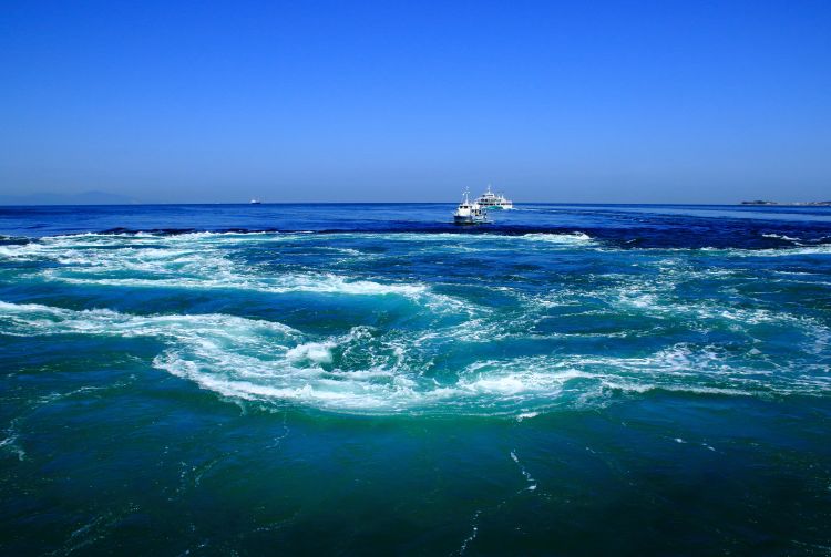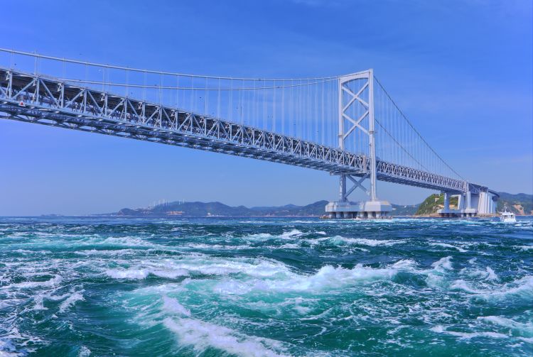 濑户内海的海水在涨潮和退潮时与纪伊水道的太平洋逆流相撞,创造了自然界最独特的现象之一:鸣门漩涡。鸣门海峡的游客可以从横跨海峡的大鸣门桥,或者从港口的多个观光船或观赏点中选取一个观看这些汹涌澎湃的漩涡。