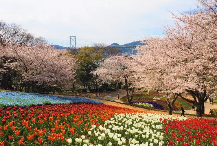在火之山公园内,可观赏到下关市的友好城市伊斯坦布尔捐赠的郁金香