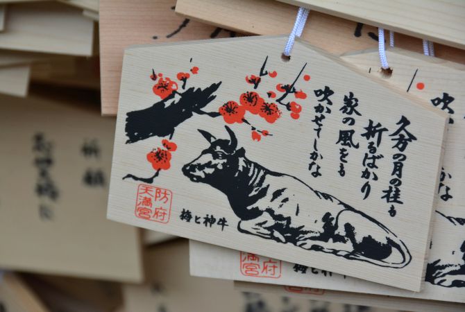 在日本三大天神神社中,历史最悠久的防府天满宫供奉的是学问之神,吸引了众多考生以及希望在学术上有所建树的人前来祭拜。