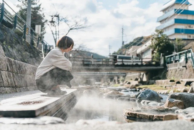 入夜之后,灯火通明的河岸是散步的好地方,赏樱时节更是如此,泡过很久的温泉之后,不妨来这里走一走。一日游的客人可以造访岛根建筑师高松伸设计的公共浴场。浴场环境优雅,充满现代化气息,提供各种有益健康的泡汤选择。