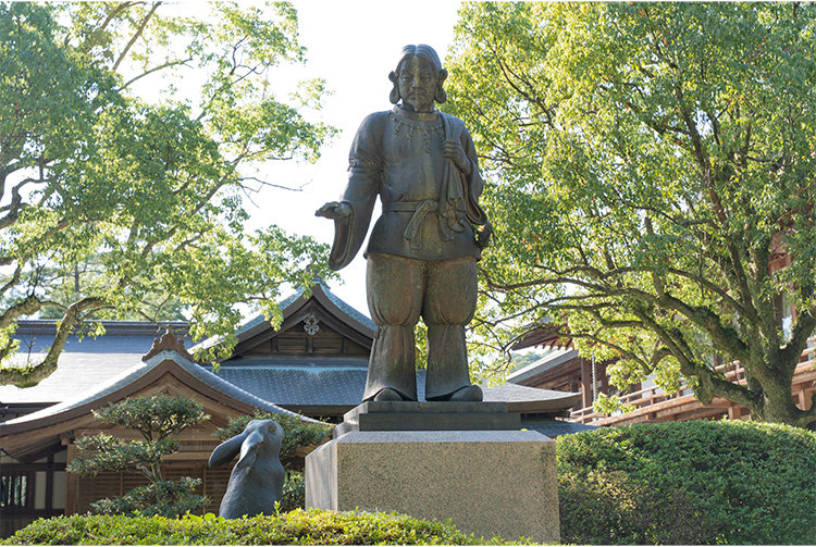 据另一则传说记载,在神道教的所有神明中,大社的主神大国主大神是最善良的神明之一。在探索神社腹地时,您可能会看到可爱的小白兔雕像。这些雕像是为了纪念当地的一则传说:大国主大神救下了一只白兔,而这只白兔免于遭受的厄运正是大国主大神自私自利的兄弟们布下的。他为了救助兔子而耽误了去因幡国会见美丽的八上姬公主的行程。这给了他那些歹毒的兄弟们先机,以赢得这位少女的芳心。然而,当大国主大神终于赶到时,他的善良和温暖是如此明显,以至于八上姬最终还是选择了他。