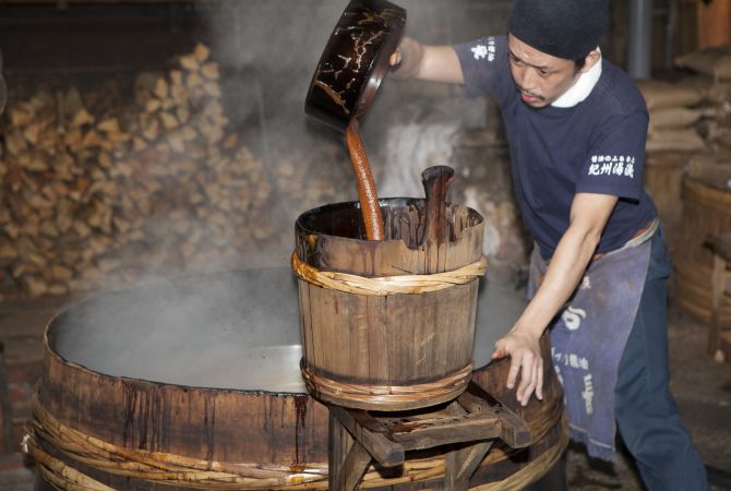 据说汤浅町会发明酱油,完全是个巧合。某个掌握了味噌制造法知识的僧侣从中国归来后,开始制造味噌,发现在制造过程中冒出的液体竟然是相当美味的调味品,可以搭配所有日本料理。于是酱油应运而生。