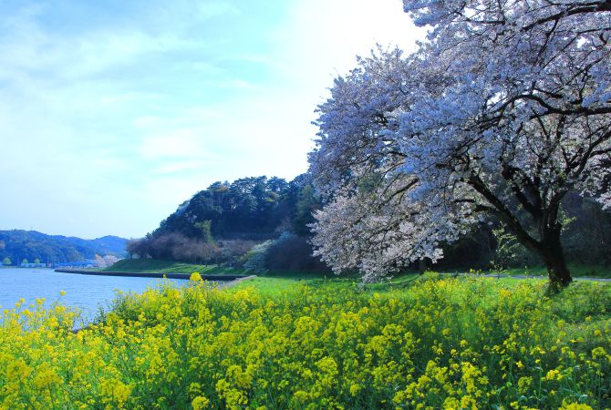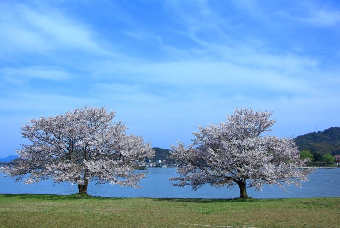 从 JR 山阴本线的 JR 湖山站步行 15 分钟,即可抵达池塘东侧。