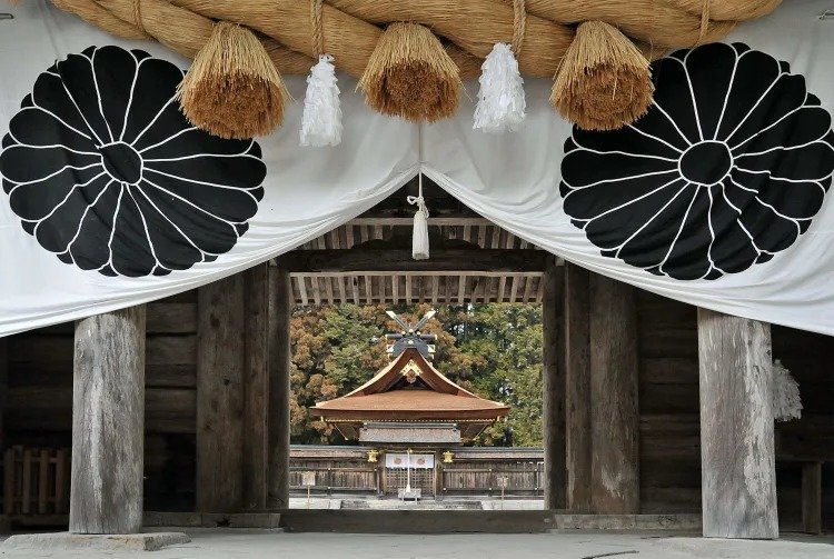 在大斋原的神社原址处矗立着目前世界上最大的鸟居