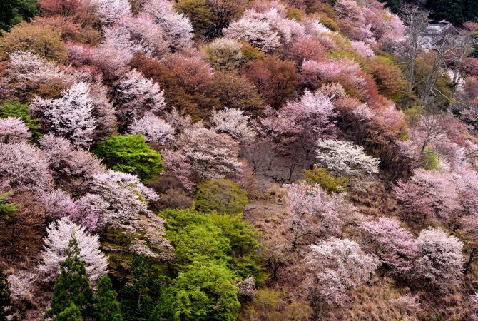 虽然每年开花季节都不一样,但一般而言,四月上旬到中旬是造访吉野山的最佳时机。山上的每一个区域都能欣赏到樱花盛开的美景,延续数天。