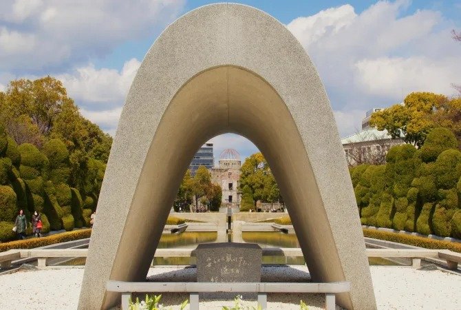 1945 年 8 月 6 日,美军对广岛投下第一颗原子弹,造成 14.6 万多人死亡。为悼念广大的罹难者和支持未来和平,广岛市特地规划了一块土地作为纪念场址。在原子弹爆炸前,这里是广岛的中心商业区。
