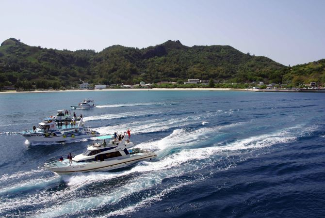 除了栖息在岛上的稀有动植物外,周边海域也有各种海洋生物。导游将带您从父岛的二见港出发,在海中寻找大型抹香鲸和座头鲸的身影。您可以通过水下传声器聆听鲸鱼的歌声。您也可以参加各种水上活动,例如和海豚同游、水肺潜水与海上皮划艇。即使是初学者也没关系。