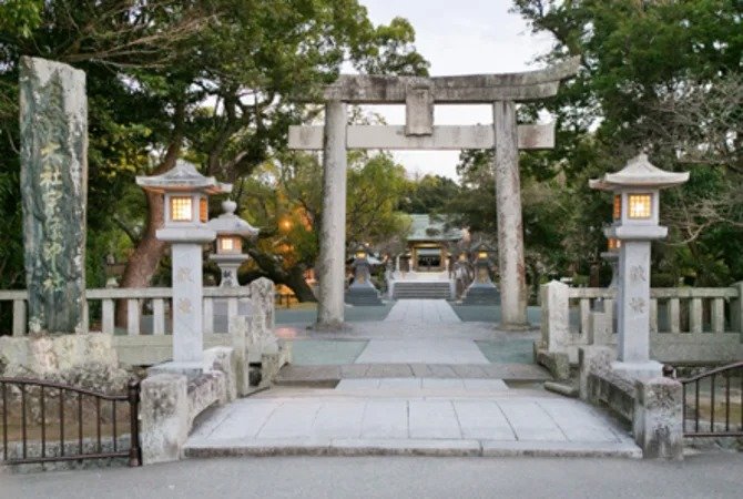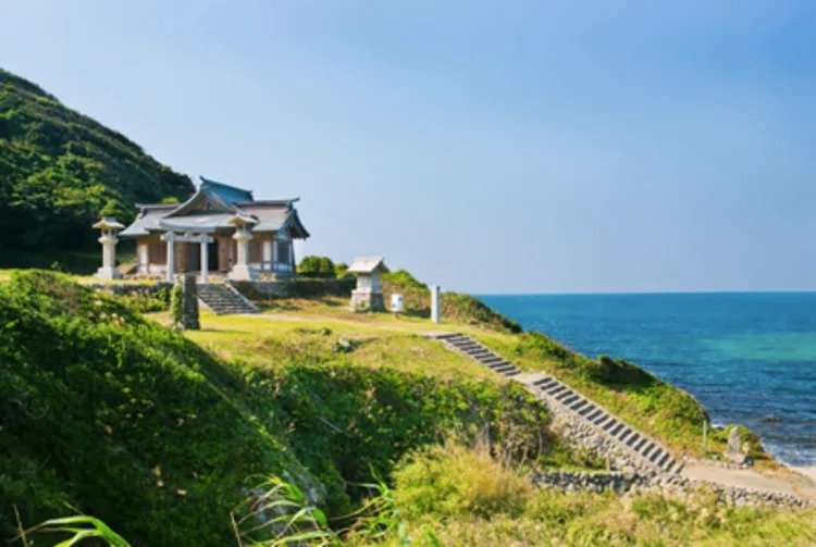 大岛位于福冈海岸外大约 10 公里处,是第二座宗像神社中津宫的所在地。从渡轮上下来后,您会看到一个鸟居以及几个相关的小神社。冲津宫遥拜所位于大岛北侧的一处山脚,是于远处朝拜冲之岛的地方。