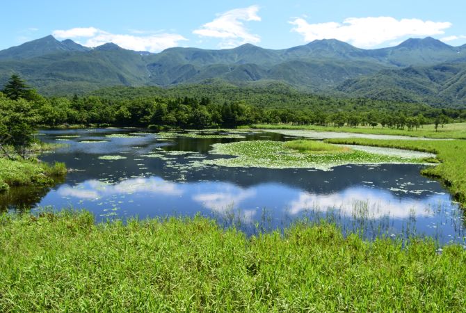 知床西临鄂霍次克海,东临根室海峡。火山活动造就了无数座被古老森林环绕的天然湖泊。围绕着知床五湖徒步 90 分钟,观赏当地的野生生物、茂密的树林以及原始的山地。赏鸟人士还会在这里发现稀有鸟类,例如毛腿渔鸮、虎头海雕与白尾海雕。海洋中同样蕴藏着丰富多样的海洋生物,尤其是在知床附近海域繁殖的大量鲑鱼及鳟鱼,都是日本重要的食物来源。