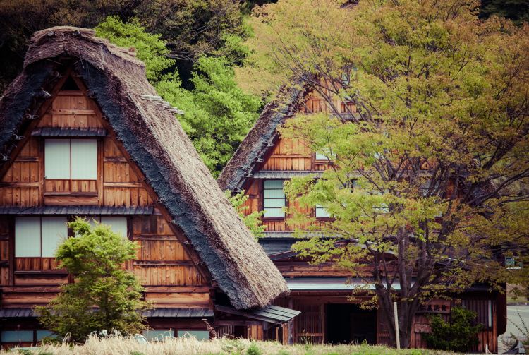 合掌式房屋的屋顶呈三角形,因与合掌祈祷相似得名。在多楼层建筑中,第三层楼和第四层楼充分展现出务农者的缜密思维。这种建筑可让务农者在严冬时节养蚕。养蚕的阁楼里,可由一楼升起的热气维持温暖环境。屋顶的斜角呈 60 度,使屋顶积雪(有时可达 4 米厚)可以轻易滑下。